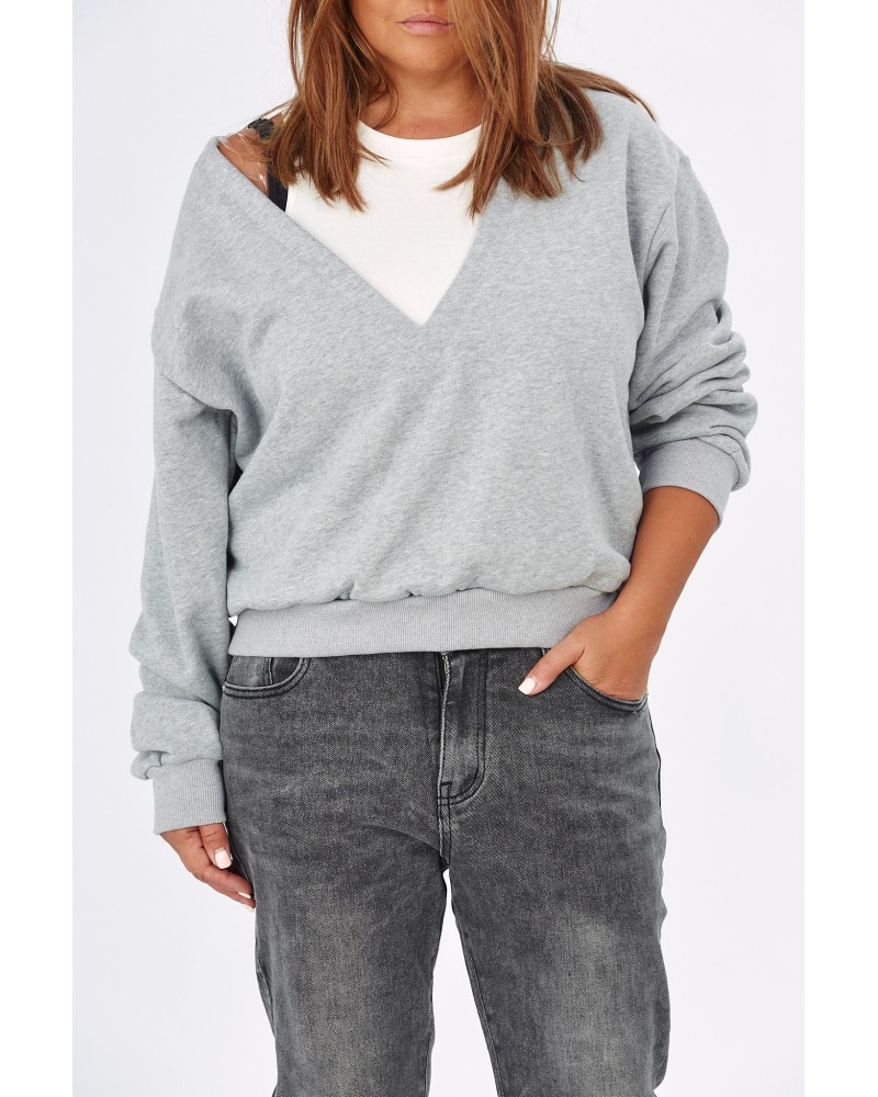 Hoodie Grigio Boyfriend Suprapus TOP Wht