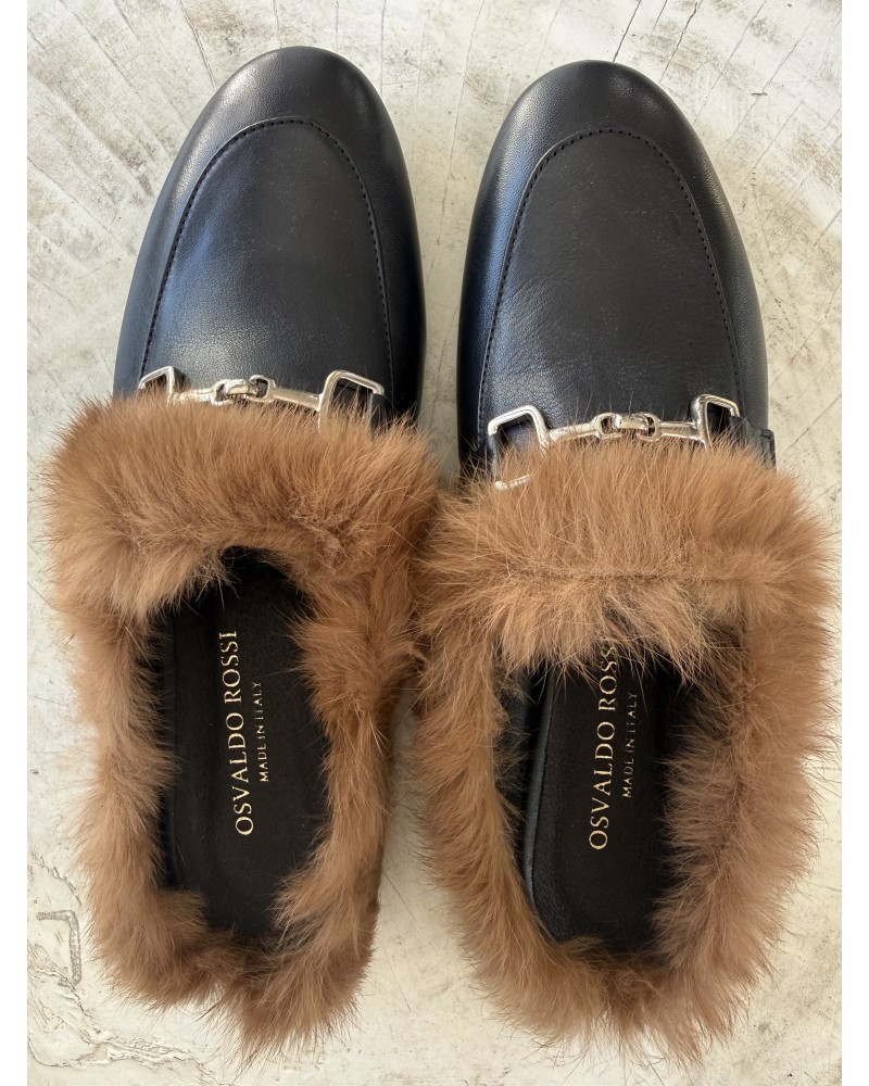 Mocasini piele si blana naturala